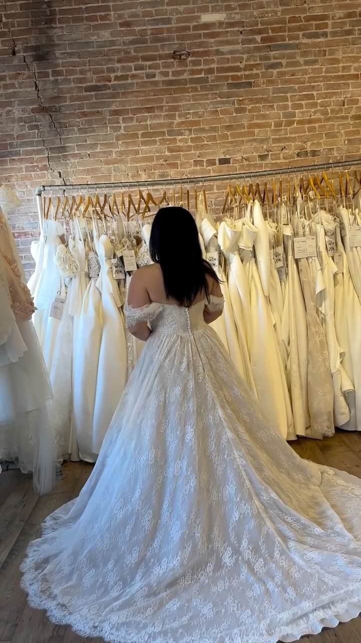 Curated designer bridal gowns in sizes 6–28, including an extensive plus-size wedding dress collection
